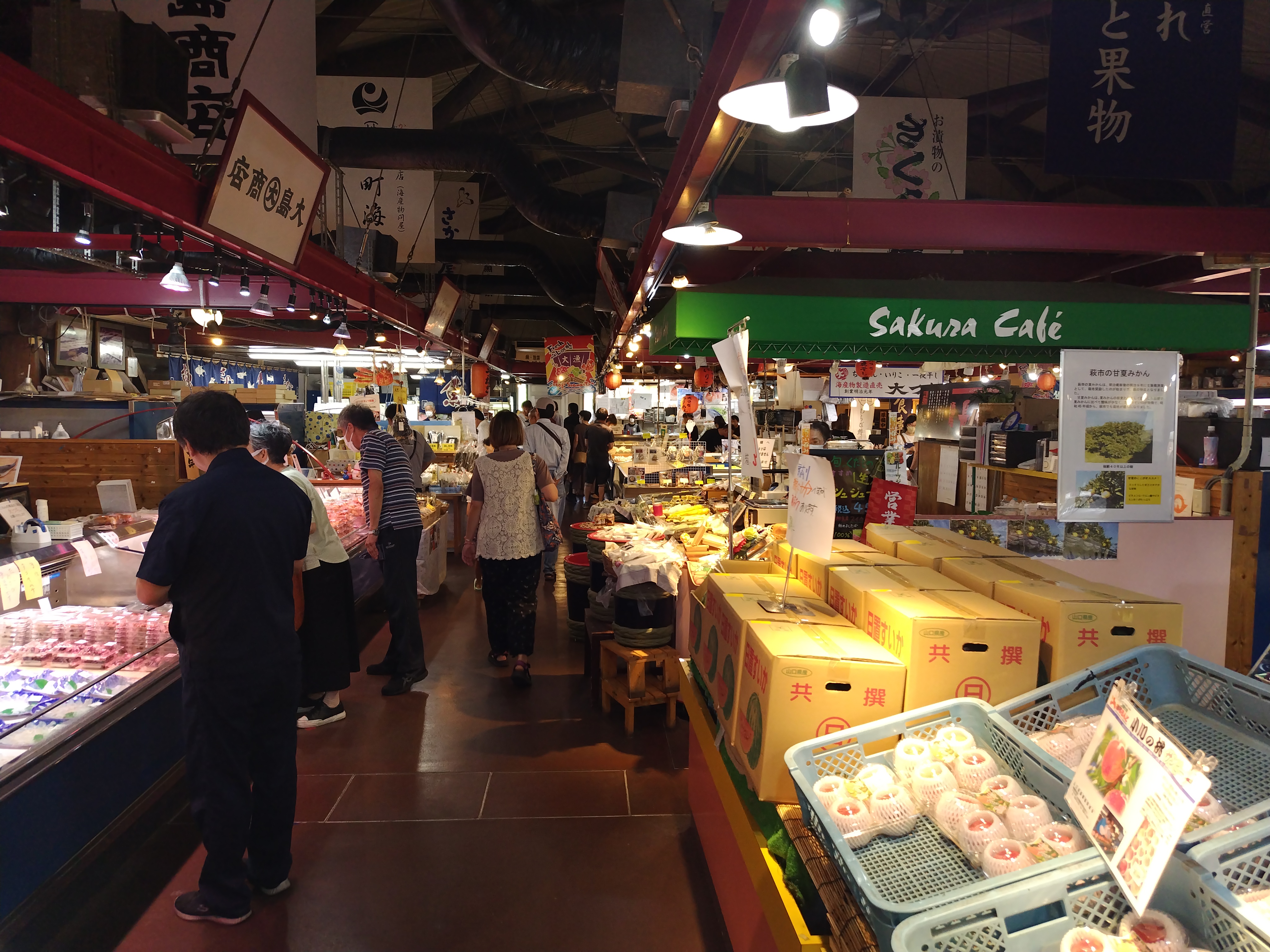 「萩漁港直結の道の駅」のキャッチフレーズどおり、新鮮な日本海の魚介類をはじめ、萩近郊の野菜や果物、精肉、干物や蒲鉾などの水産加工品、地元の味噌・醤油などの加工食品、漬物、萩・阿武地区の酒蔵の日本酒、デザート類まで、萩の旬な食材が豊富に店頭に並びます。
